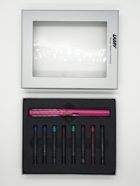 Комплект из ручки перьевой "Safari", F, Розовый+Картр. ассорт. 8 шт.