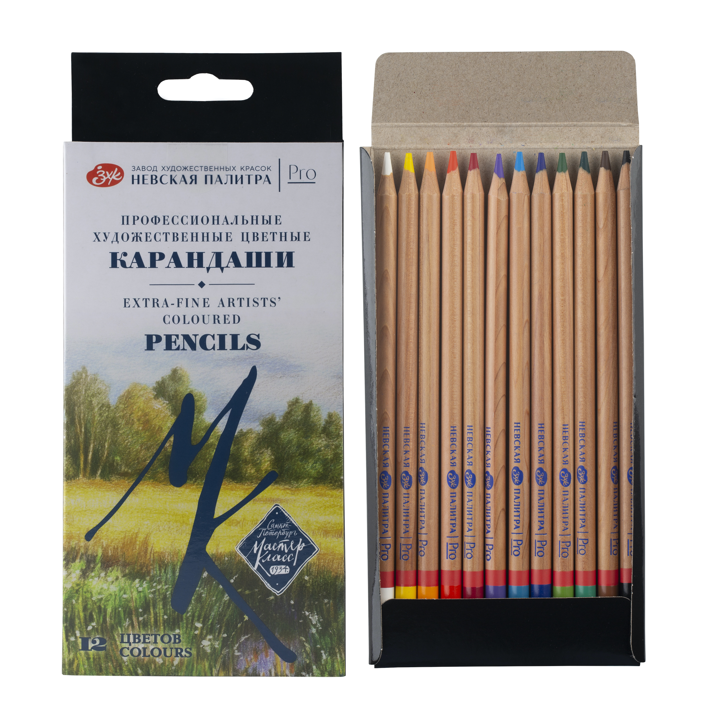 Набор профессиональных цветных карандашей "Мастер-Класс", 12 цветов, в картонной упаковке