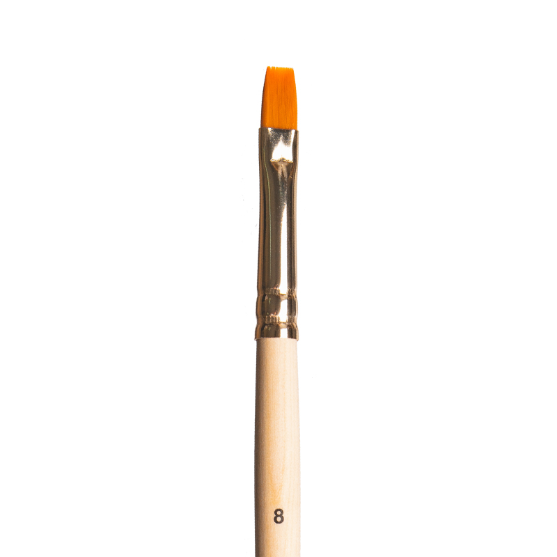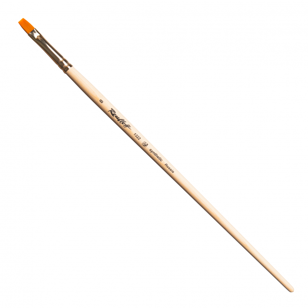 Кисть синтетика плоская, длинная ручка "1322" №8 для масла, акрила, гуаши, темперы