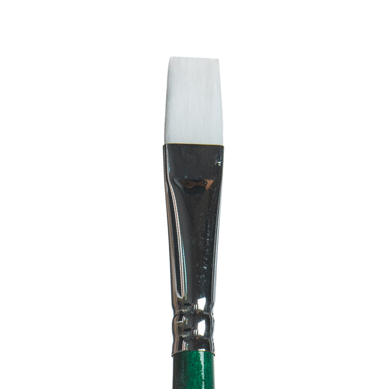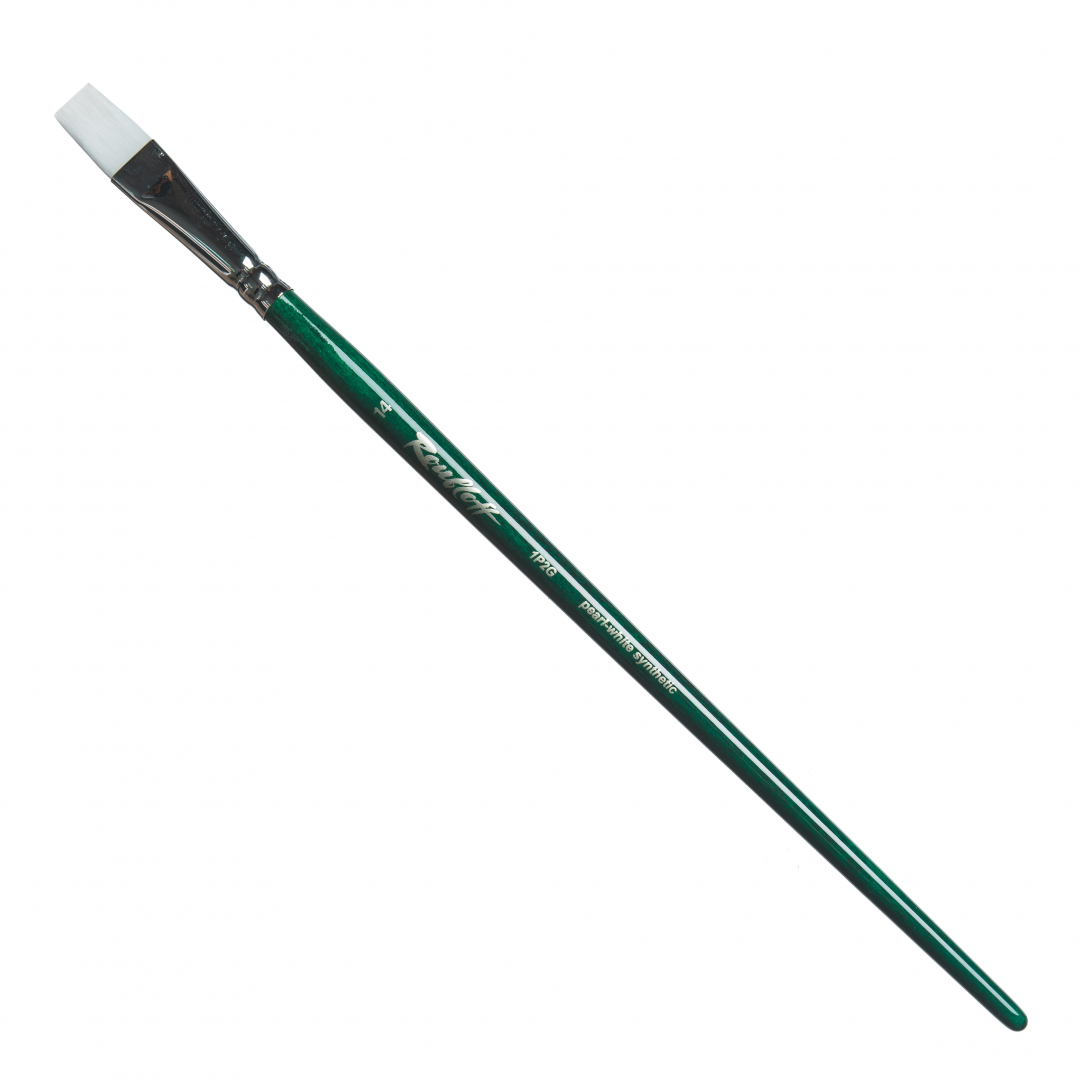 Кисть жемчужная синтетика, плоская, длинная ручка "1P2G" №14, для масла, акрила, гуаши, темперы