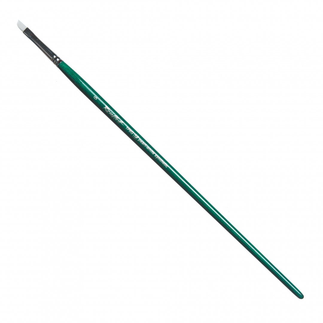 Кисть жемчужная синтетика, скошенная, длинная ручка "1P6G" №6, для масла, акрила, гуаши, темперы