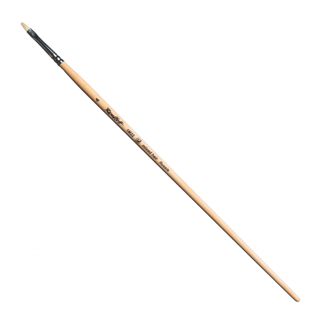 Кисть синтетика+щетина, плоская, длинная ручка "1M22" №4, для масла, акрила, гуаши, темперы