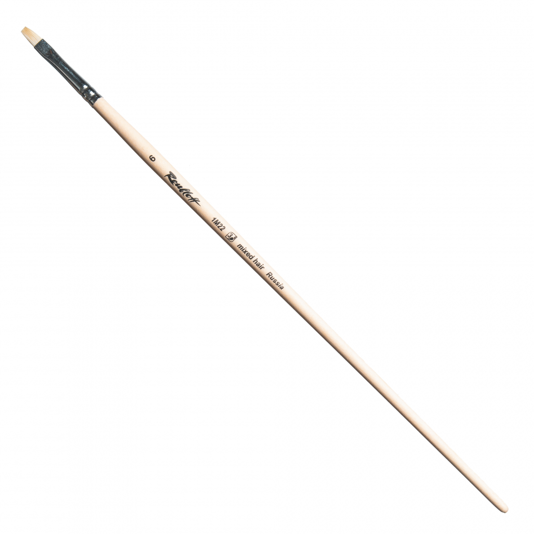 Кисть синтетика+щетина, плоская, длинная ручка "1M22" №6, для масла, акрила, гуаши, темперы