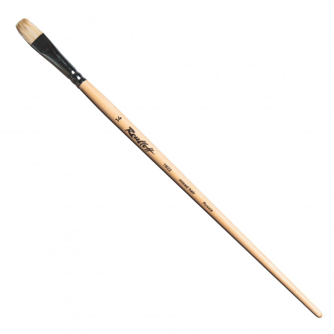 Кисть синтетика+щетина, плоская, длинная ручка "1M22" №14, для масла, акрила, гуаши, темперы