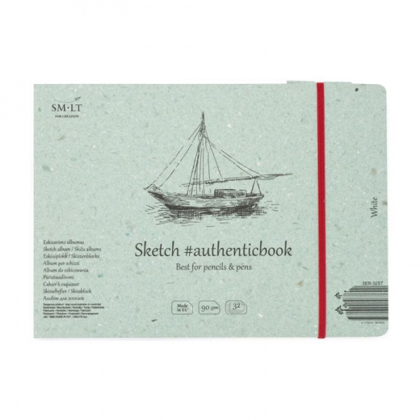 Скетчбук White с белой немелованной бумагой (100% целлюлоза) плотностью 90 г/м2 подходит для всех видов зарисовок, идеален для карандашей и ручек. Фактура бумаги устойчива к исправлениям и легко позволяет стирать карандаш. Плотная обложка из светло-голубого картона с закладкой на красной резинке, внутри 32 листа. Тип крепления: сшивка по короткой стороне. Сертифицирована FSC.