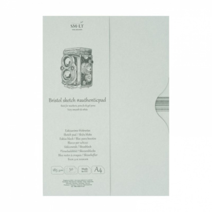 Альбом "Authentic Bristol" в картонной папке с гладкой экстрабелой бумагой плотностью 185 г/м2 идеально подходит для карандашей, ручек, маркеров и чернил. Фактура бумаги устойчива к исправлениям и легко позволяет стирать карандаш. Картонная обложка серого цвета, с обратной стороны – твердая подложка. Внутри 50 листов. Тип крепления: клеевое по длинной стороне. Бумага сертифицирована FSC "Mix".