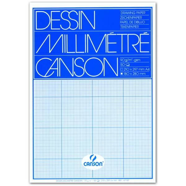 Высококачественная белая бумага с интервалом малых линий – 1 мм, больших – 5 мм. Отличный вариант для выполнения технического рисунка карандашом или чернилами.
