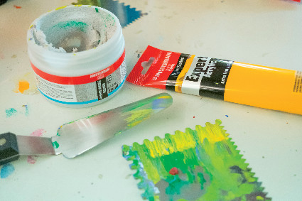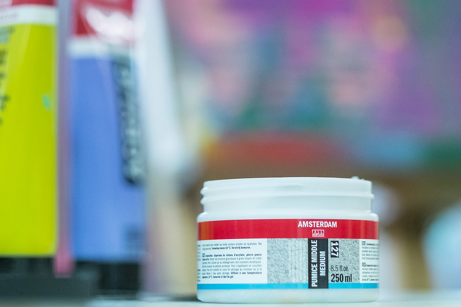 Можно наносить как самостоятельно (пемза имеет натуральный серый оттенок), так и в смеси с акриловыми красками. Также паста прекрасно ложится на уже сформированный красочный слой, что удобно при работе с быстросохнущими красками.