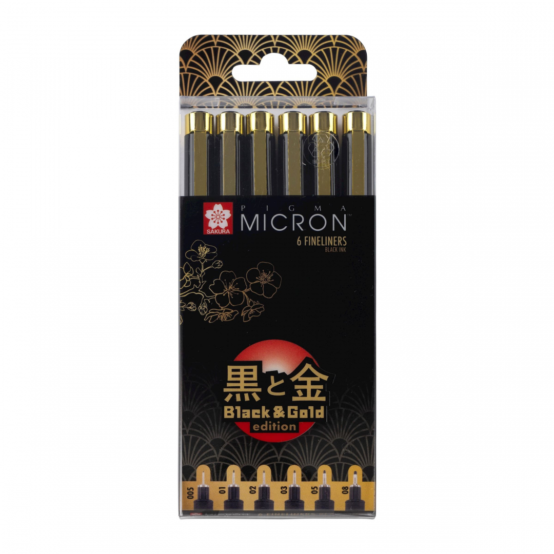 Набор капиллярных ручек "Pigma Black & Gold" лимитированный, 6 шт (005-08), черный