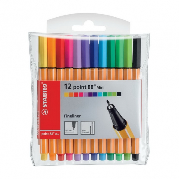 Набор капиллярных ручек "Point 88", mini, 12 цв. в пластиковом футляре, толщина 0,4мм