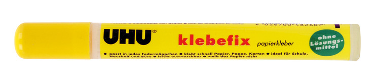Самый безопасный клей рекомендованный для использования с самого раннего возраста. Безопасный детский клей UHU Klebefix создан на основе глюкозы и поэтому абсолютно безвреден при попадании на язык. Подходит для склеивания бумаги, картона, текстиля. Не деформирует склеиваемую поверхность. Клей прост в применении, легко смывается водой и не имеет запаха. Рекомендован для использования детям с 3х лет.