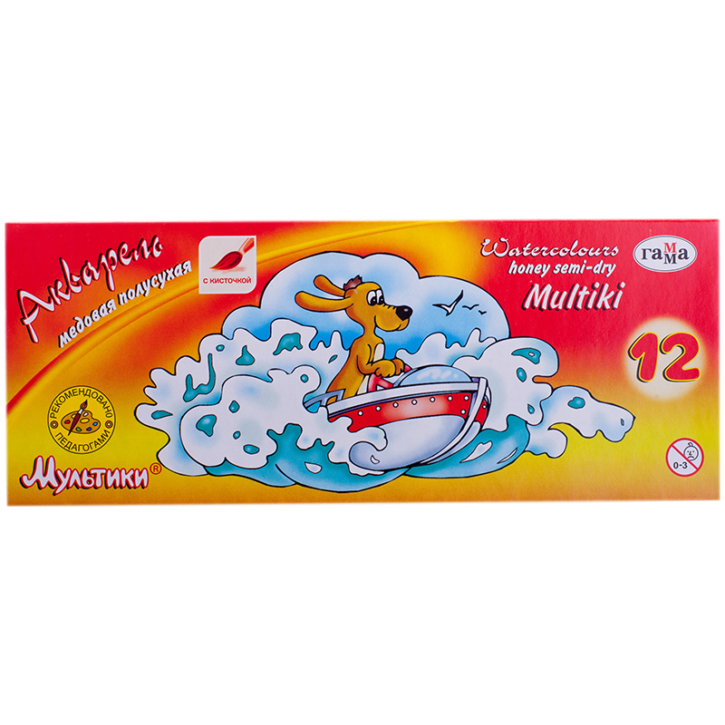 Серия «Мультики» - это классическая серия Компании «Гамма». В ней полностью представлен стандартный набор младшего школьника, необходимый для занятий по изобразительному искусству. Уникальность серии заключается в эргономичном размещении всей необходимой палитры цветов. Тонкая и вместительная упаковка акварели «Мультики» не займет много место в портфеле. Набор акварельных красок «Мультики» включает палитру из 12 цветов и кисть.