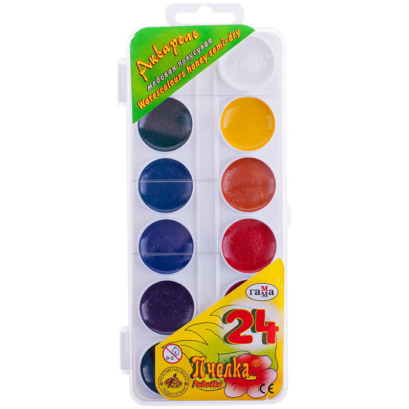 Краски акварельные для школы и творчества. Упаковка - пластиковая коробочка, без кисти.