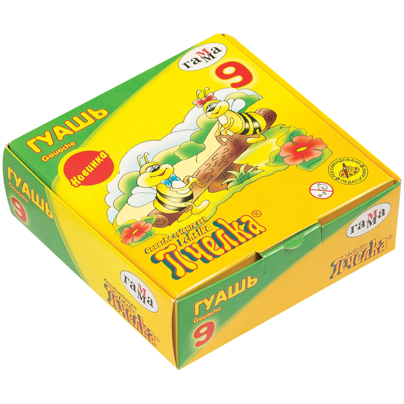 Набор гуашевых красок, 9 цветов, 20 мл. Насыщенные и яркие цвета. Краски хорошо разносятся на бумаге.