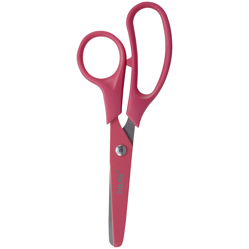 Ножницы с закругленным концом и лезвием из нержавеющей стали. Противоударная пластиковая ручка и эргономичная ручка. Идеально подходит для использования в школе. Розового цвета.