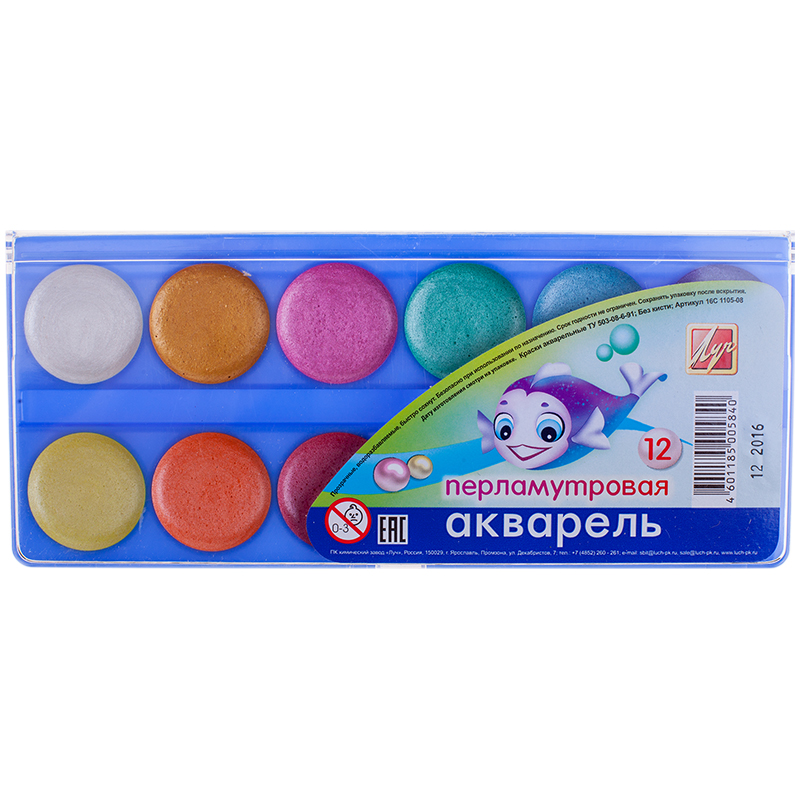 Акварель перламутровая - это сочетание чистых прозрачных цветов с эффектом перламутра. Акварель интересна в применении своими светящимися и блестящими переливами. Пластмассовая упаковка с прозрачной крышкой, без кисти.