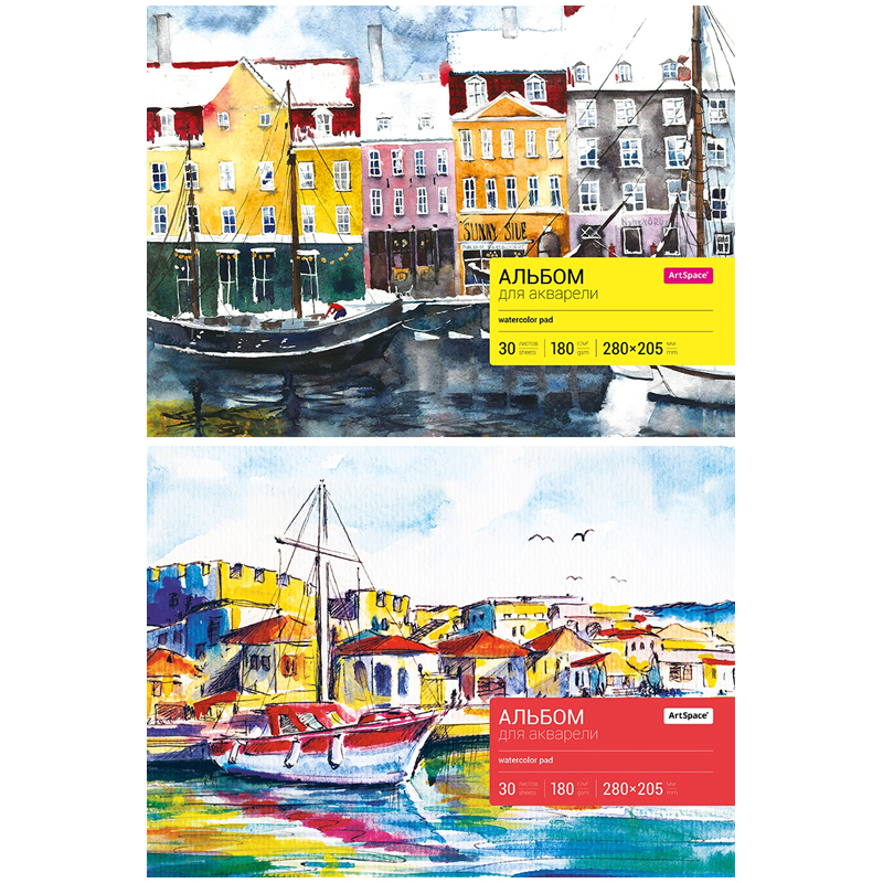 Альбом для рисования акварелью на склейке. Специальная бумага не деформируется при намачивании. Блок - плотная офсетная бумага формата А4, 30 листов на склейке. Обложка - мелованный картон. Жесткая подложка позволяет чертить на весу.