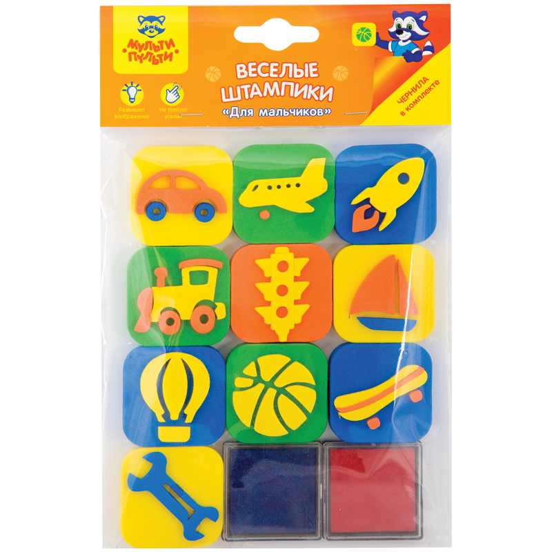 Набор штампиков Мульти-Пульти содержит чернила на водной основе. Чернила безопасны и легко смываются водой. Штампики подходят для многоразового использования. Для детей старше 3-х лет.