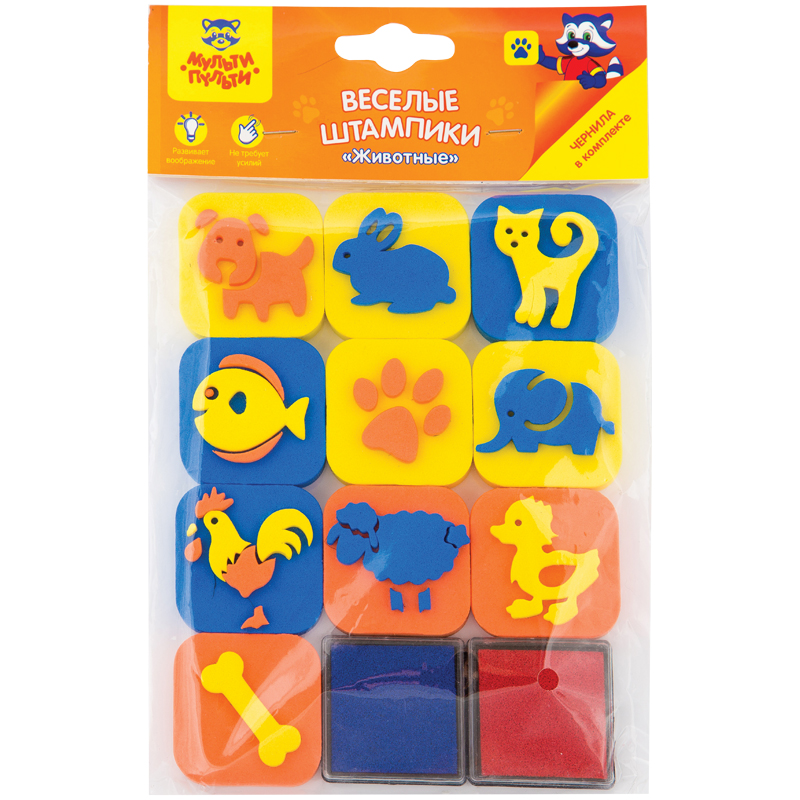 Набор штампиков Мульти-Пульти содержит чернила на водной основе. Чернила безопасны и легко смываются водой. Штампики подходят для многоразового использования. Для детей старше 3-х лет.