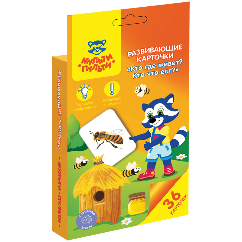 Развивающие карточки "Кто где живет? Кто что ест?", 36шт., картон