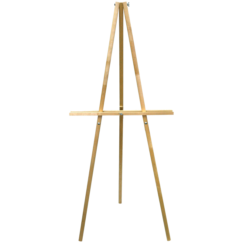 Палочный демонстрационный мольберт «ХМ - Школьный» – это портативный разборной деревянный демонстрационный мольберт типа тренога собираемый из планок, соединенных винтами. В рабочем положении мольберт является напольной треногой без мачты. В разобранном состоянии мольберт состоит из восьми планок и комплекта соединительных винтов и легко транспортируется. Основной фиксатор мольберта, зажимающий вверху ножки мольберта в выбранном положении, выполнен в виде винта с гайкой типа «барашек». Каждая ножка мольберта состоит из двух планок, соединенных винтами. Полка мольберта также собирается из двух планок и закрепляется на необходимой высоте винтом. Высота мольберта рассчитана на школьников среднего и старшего школьного возраста. Зажимов для холста нет. Картина устанавливается на полку и прислоняется к ножкам мольберта. Мольберт предназначен для демонстрации небольших и средних картин. Максимальная высота и вес экспонируемых картин ограничиваются общей устойчивостью конструкции. Мольберт выполнен из березы и пропитан лаком. Планки мольберта имеют заоваленное сечение. Сборная планочная конструкция не в полной мере может обеспечить устойчивость мольберта. Однако дешевизна, портативность и воздушный внешний вид – это существенные преимущества таких мольбертов при применении для демонстрации картин, особенно на передвижных выставках. При необходимости мольберт может применяться и для художественных работ.