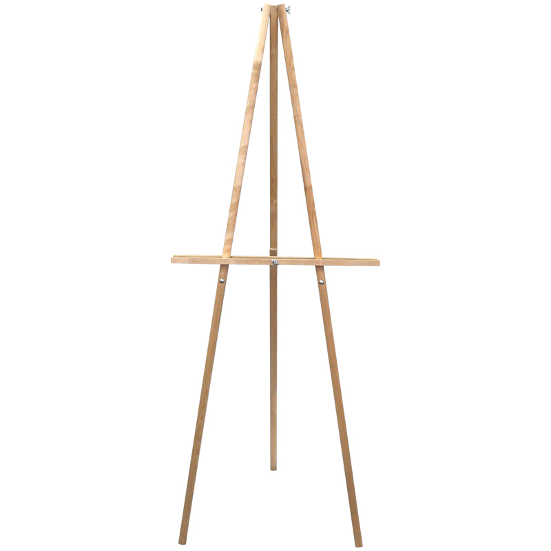 «Палочный демонстрационный мольберт «ХМ - облегченный» – это портативный разборной деревянный демонстрационный мольберт типа тренога собираемый из планок, соединенных винтами. В рабочем положении мольберт является напольной треногой без мачты. В разобранном состоянии мольберт состоит из восьми планок и комплекта соединительных винтов и легко транспортируется. Основной фиксатор мольберта, зажимающий вверху ножки мольберта в выбранном положении, выполнен в виде винта с гайкой типа «барашек». Каждая ножка мольберта состоит из двух планок, соединенных винтами. Полка мольберта также собирается из двух планок и закрепляется на необходимой высоте винтом. Зажимов для холста нет. Картина устанавливается на полку и прислоняется к ножкам мольберта. Мольберт предназначен для демонстрации небольших и средних картин. Максимальная высота и вес экспонируемых картин ограничиваются общей устойчивостью конструкции. Мольберт выполнен из березы и пропитан лаком. Планки мольберта имеют заоваленное сечение. Облегченная сборная планочная конструкция не в полной мере может обеспечить устойчивость мольберта. Однако дешевизна, портативность и воздушный внешний вид – это существенные преимущества таких мольбертов при применении для демонстрации картин, особенно на передвижных выставках. При необходимости мольберт может применяться и для художественных работ.