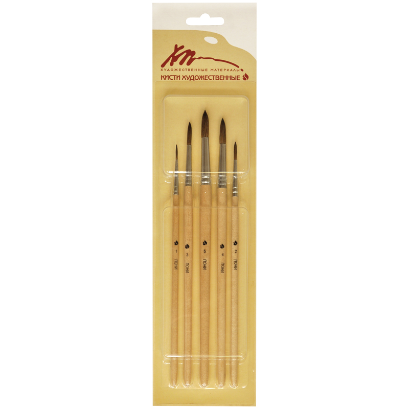 Благодаря наличию кистей одного типа сырья (пони), но близких номеров (круглые 1, 2, 3, 4 и 5), набор позволяет изучить различие в работе кистью разного диаметра, изучить характеристики упругости. Круглые кисти предназначены для мазков различной толщины