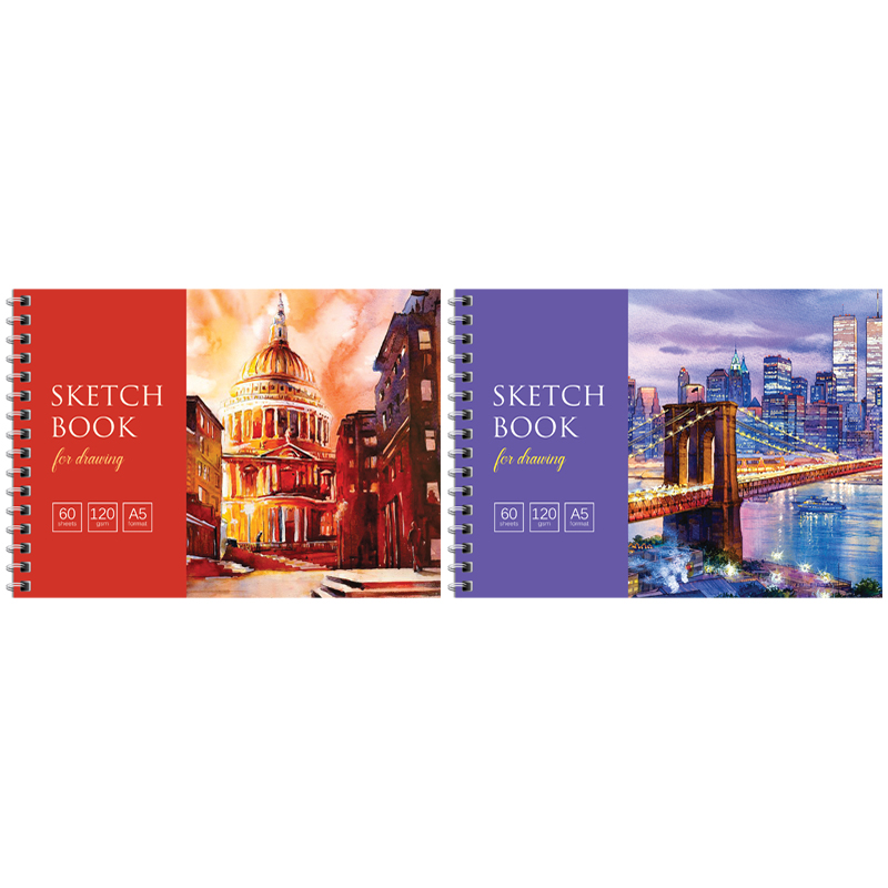 Скетчбук-блокнот для эскизов и зарисовок 60л. А5 на гребне "Городской пейзаж", 120г/м2