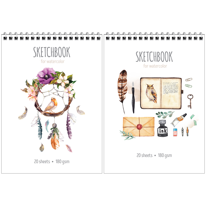Блокнот для набросков, эскизов, зарисовок в различных видах техники рисования: акварелью, карандашом, сангиной, соусом, углем, пастелью и тушью. Состоит из рисовальной бумаги (не офсет!!!) белого цвета, плотностью 180г/м2, пружина слева и имеет основание из жесткого картона для удобства рисования.