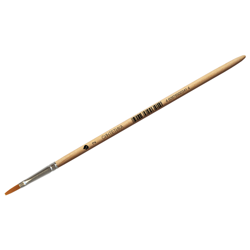 Кисть синтетическая. Форма рабочей части: круглая. Обойма: алюминий. Ручка короткая деревянная. Покрытие ручки: пропитка бесцветным лаком. Каждая кисть имеет ШК .