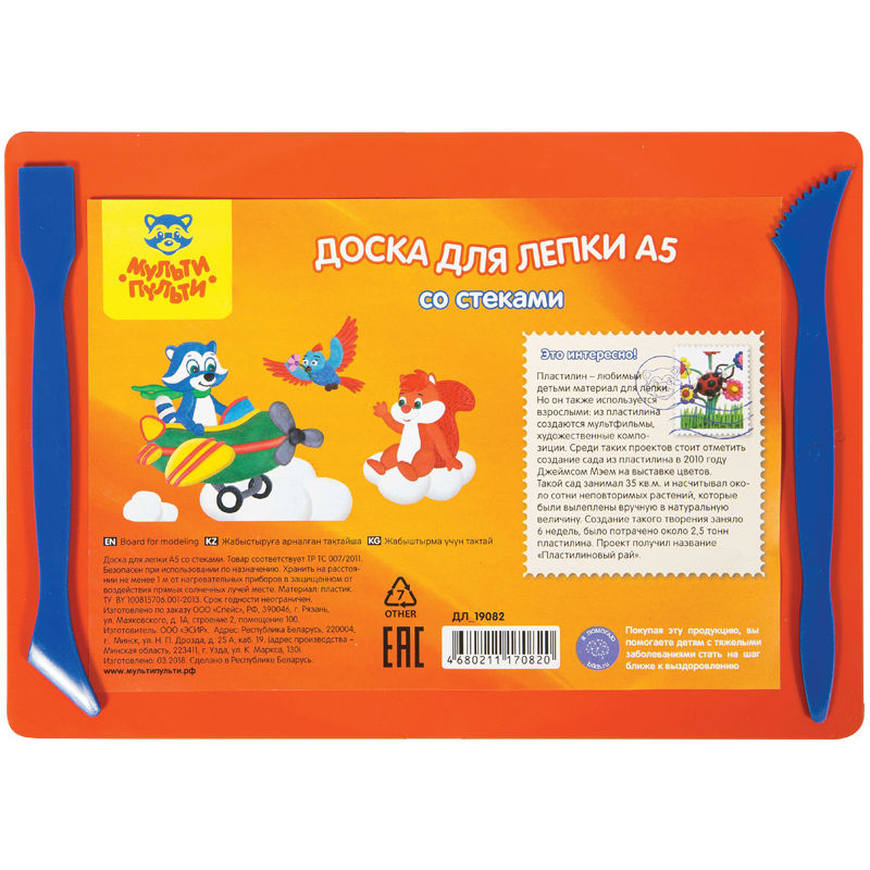 Доска формата А5 предназначена для лепки из пластилина. Изготовлена из полистирола, устойчивого к царапинам. Два стека в наборе.
