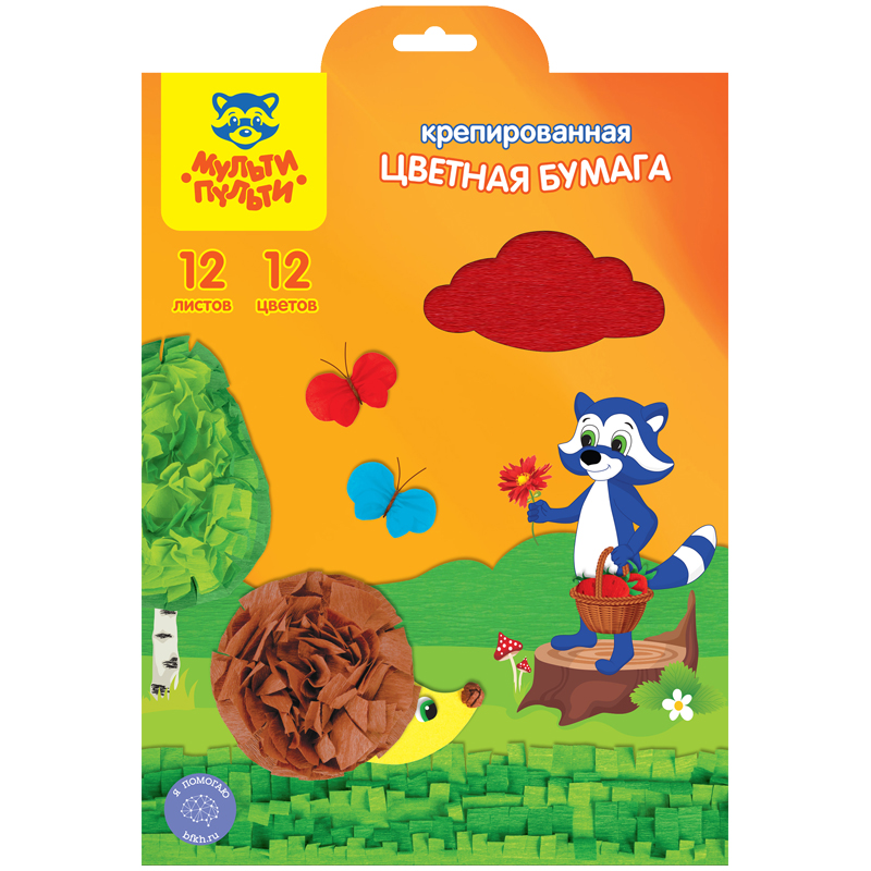 Бумага с мелкоскладчатой (крепированной) поверхностью. Применяется для декорирования открыток и поделок, создания объемных композиций, декора, оформления подарков. Крепированная бумага идеально подходит для детского творчества. Фактура бумаги позволяет создавать объемные яркие поделки, которые вызывает у детей большой интерес к творческому процессу. Разрезая, сгибая, склеивая бумагу, ребенок производит действия, положительно влияющие на моторику рук. Работа с этим материалом помогает развить и творческие качества ребенка: чувство цвета, формы, композиции. Также популярна в таких направлениях как скрапбукинг, декупаж, кардмейкинг, торцевание изготовление топиариев, и искусственных цветов. В наборе 12 листов формата А4 разных цветов в папке с замком для удобного хранения и европодвесом. Для детей старше 3-х лет.