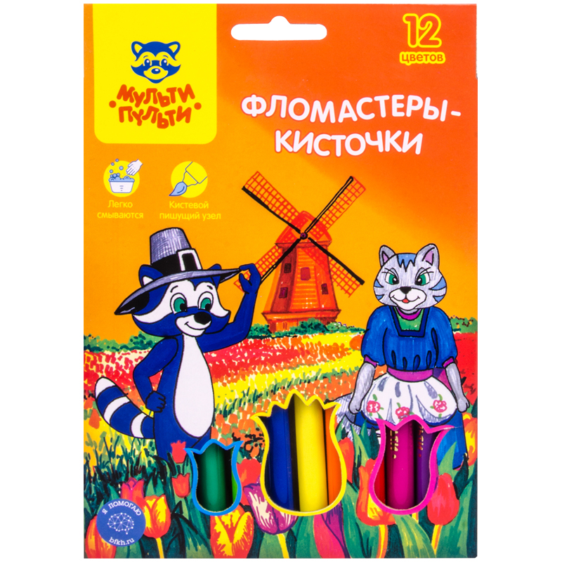 Фломастеры-кисточки Мульти-Пульти помогут развить творческие способности малышей. Разная толщина линии и возможность рисовать как настоящей кистью, обязательно понравятся юному художнику. Вентилируемый колпачок, смываемые чернила. Упаковка в картонную коробку с европодвесом. Для детей старше 3-х лет.