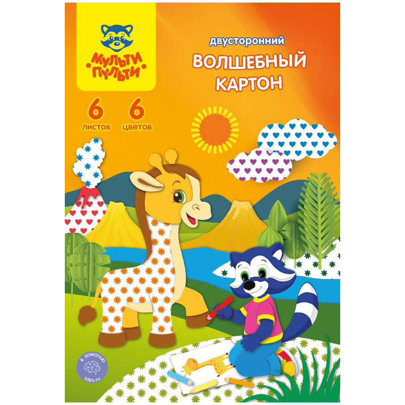 Двусторонний цветной мелованный картон Мульти-Пульти предназначен для развития творческих способностей и воображения детей. С помощью цветного картона ребенок сможет создать яркие поделки и аппликации, а узоры на картоне сделают их более красочными и интересными. Для детей старше 3-х лет.