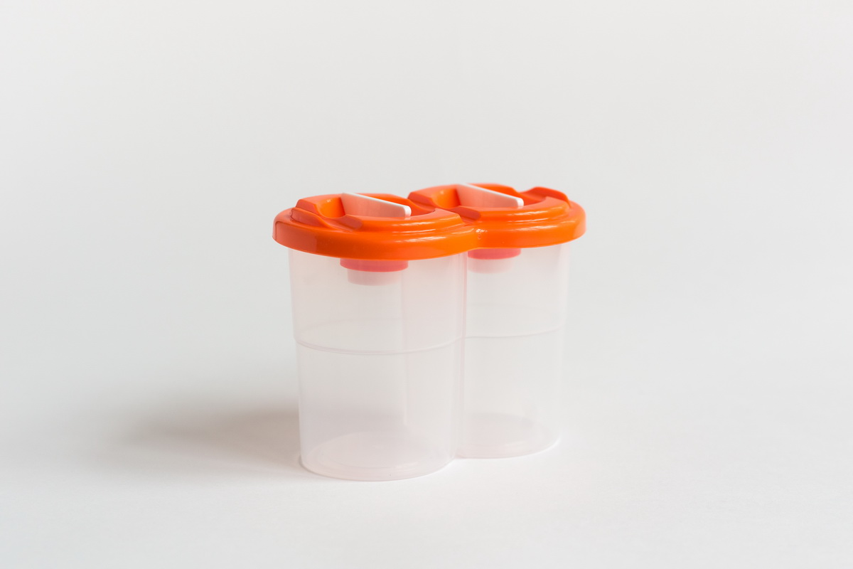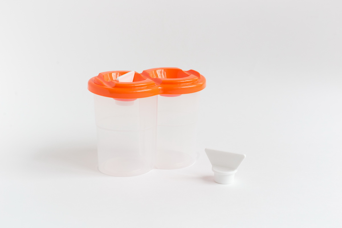 Двойной пластиковый стаканчик для воды или разбавителя. В комплекте две затычки для отверстий стаканчика, которые помогают перенести стаканчик без риска расплескивания. Размер 12х9,5х7,3 см.