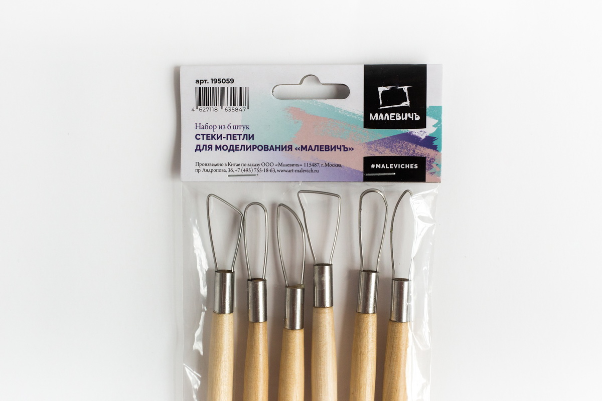 Набор стеков-петель для работы с глиной и пластилином. Серцевина стека сделана из дерева, петли из металла.