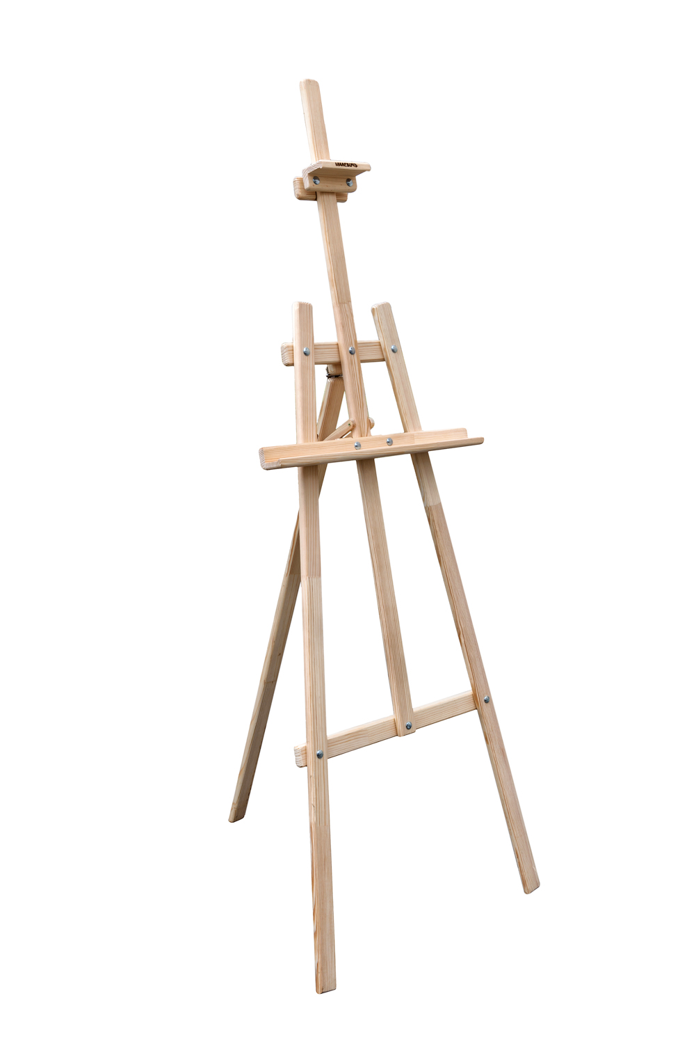 Мольберт Лира классической конструкции из натурального дерева. Угол наклона опорной ноги можно изменять, высота полки и фиксатора холста также регулируется. Бюджетный и практичный вариант студийного мольберта. Максимальная высота холста - 120см; Ширина - 55см, глубина - от 7 до 120см; Ширина полки - 55см, глубина - 3,5см; Высота - 150-170см;Вес - 2,8кг.