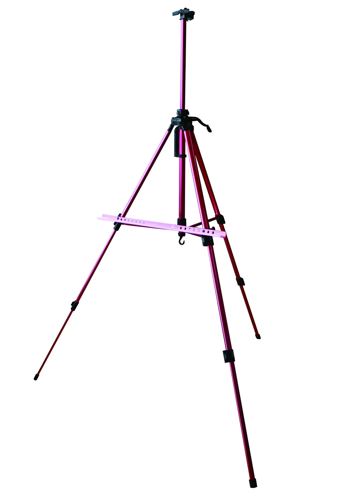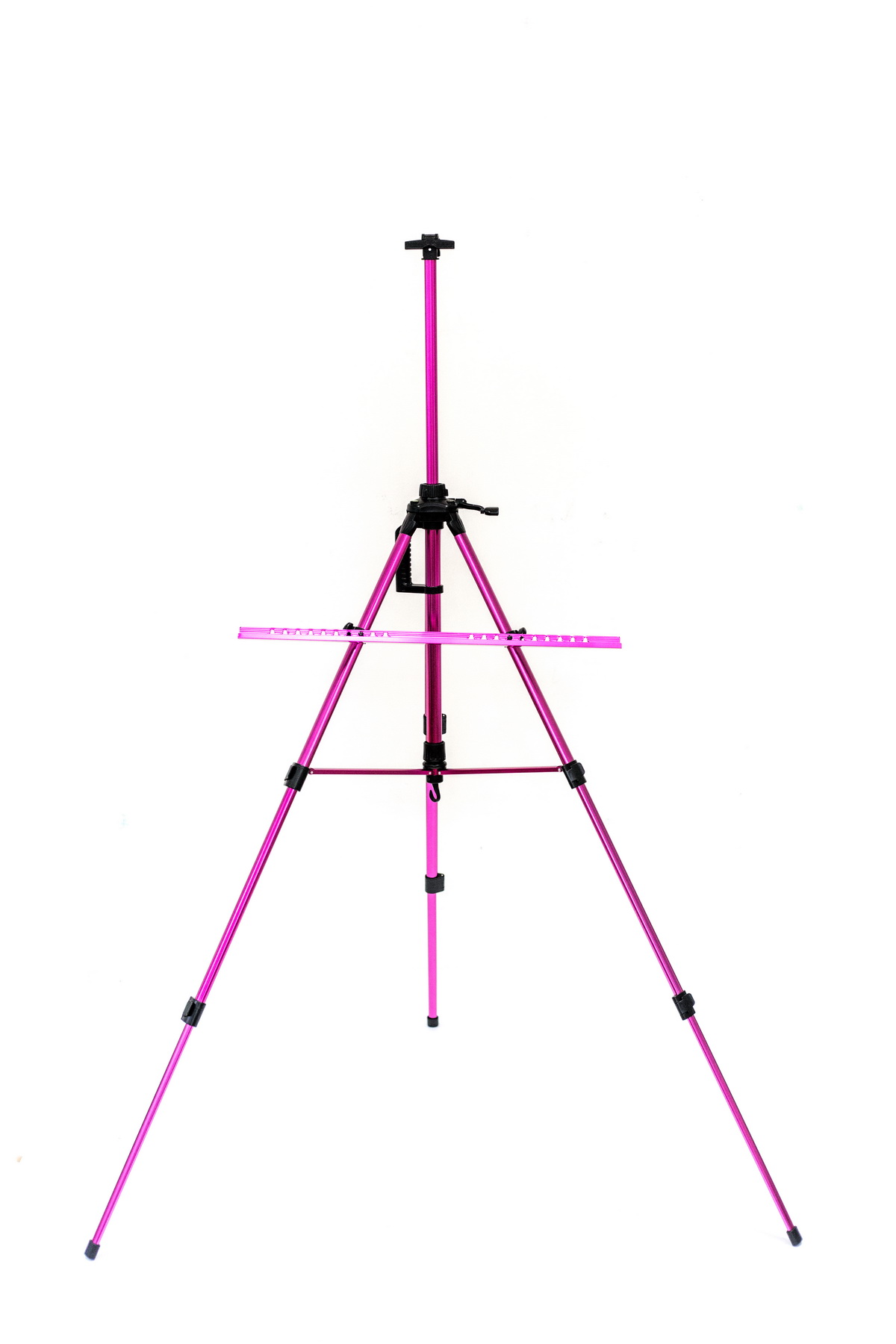 Алюминиевая тренога с регулируемой полкой для холста. Складной мольберт можно использовать как дома, так и на плэнере. Цвет розовый металлик. В комплект входит чехол.