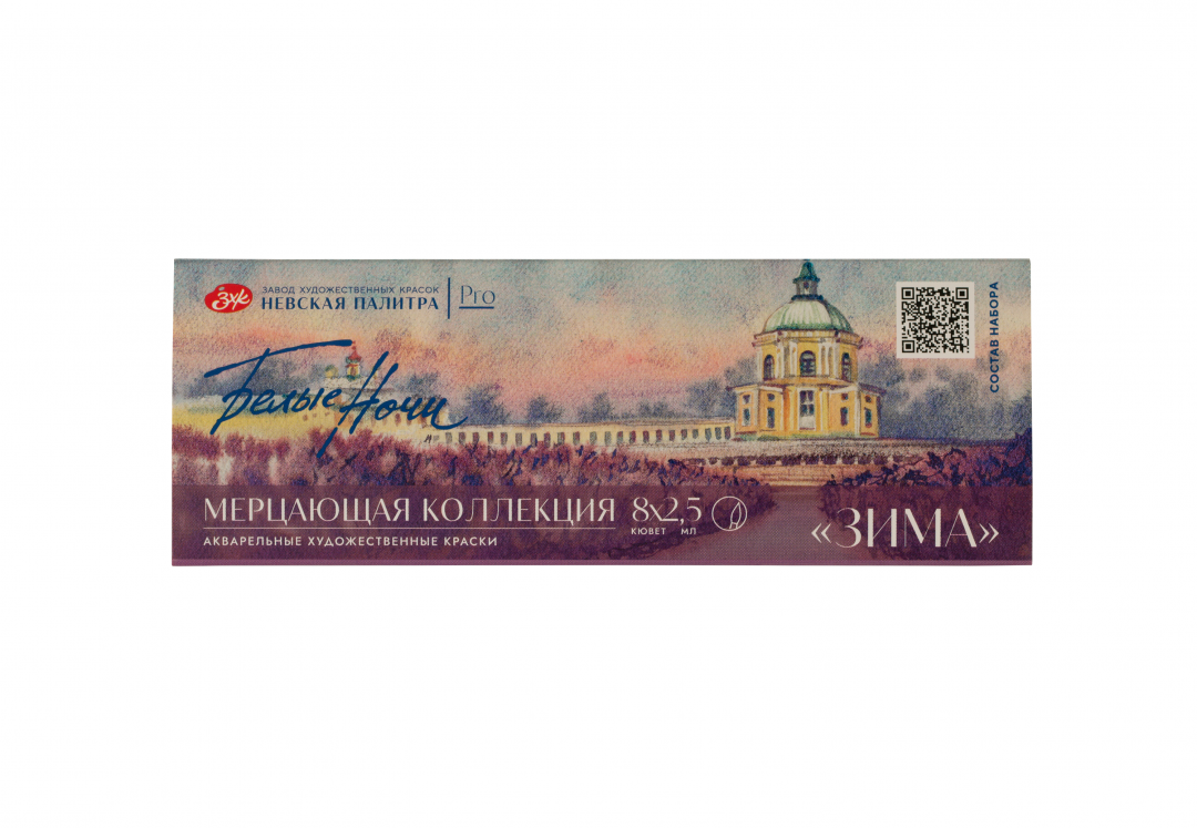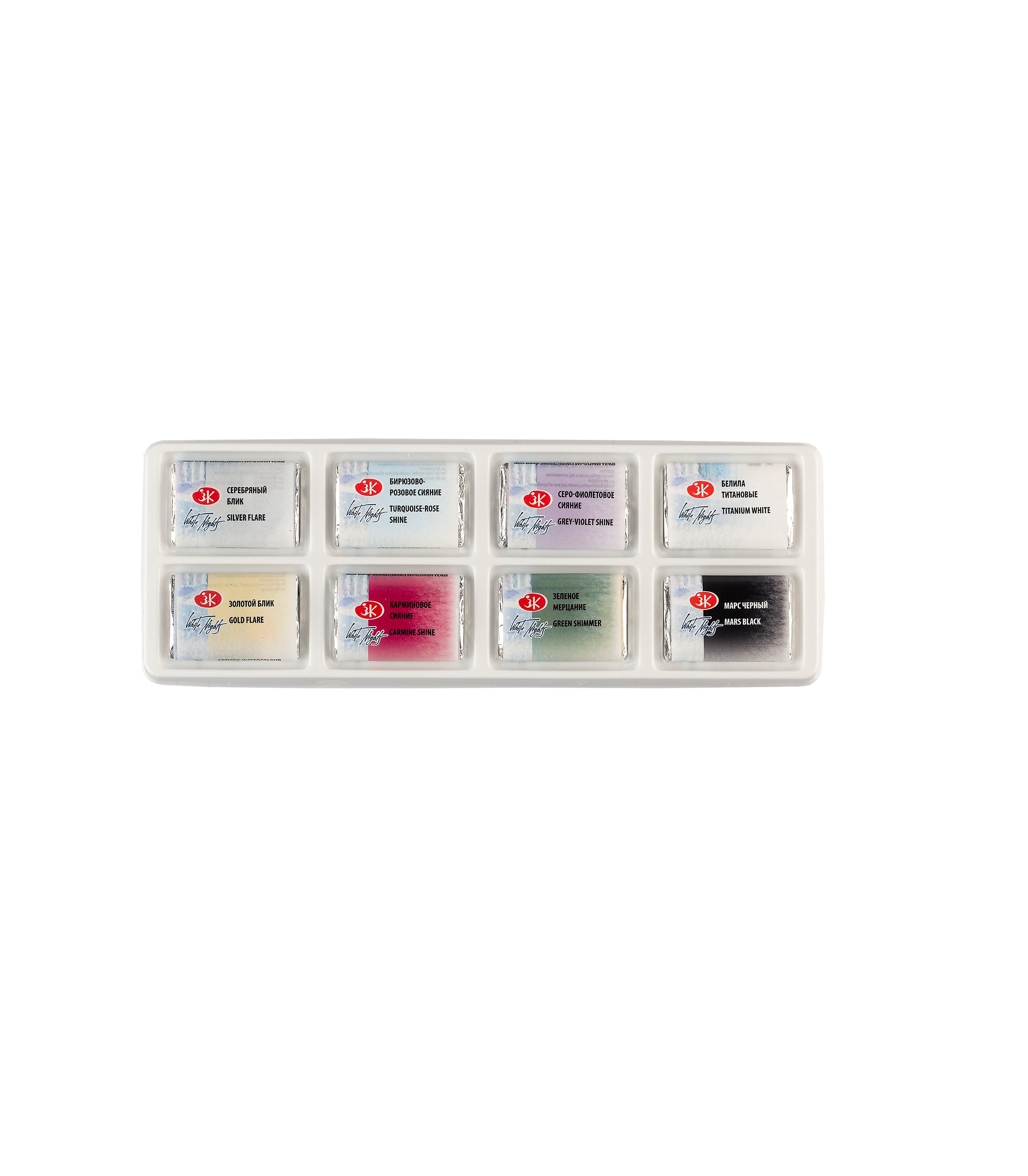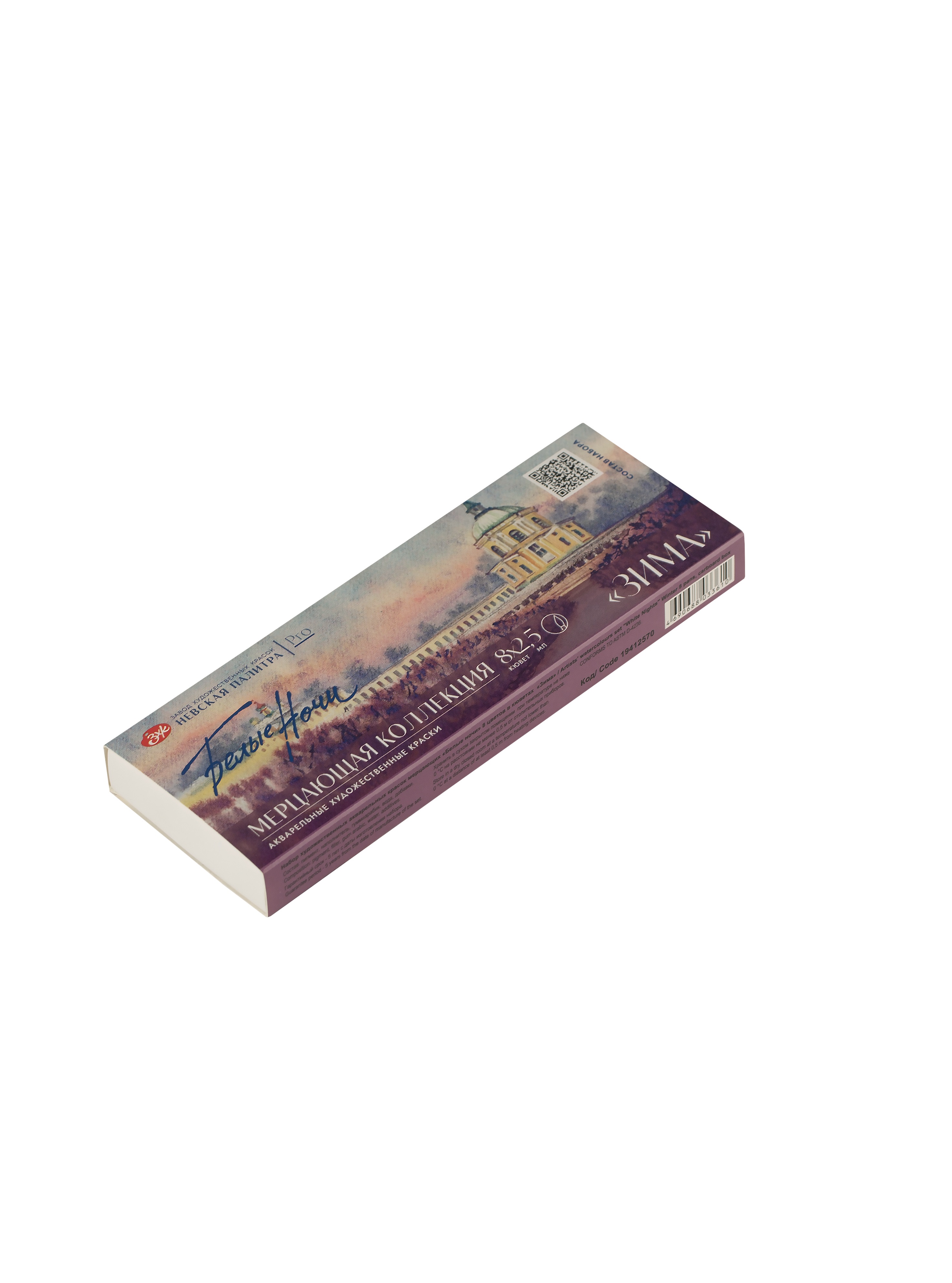 Набор акварели "Белые Ночи", мерцающая акварель "Зима", 8 шт х 2,5 мл, картон