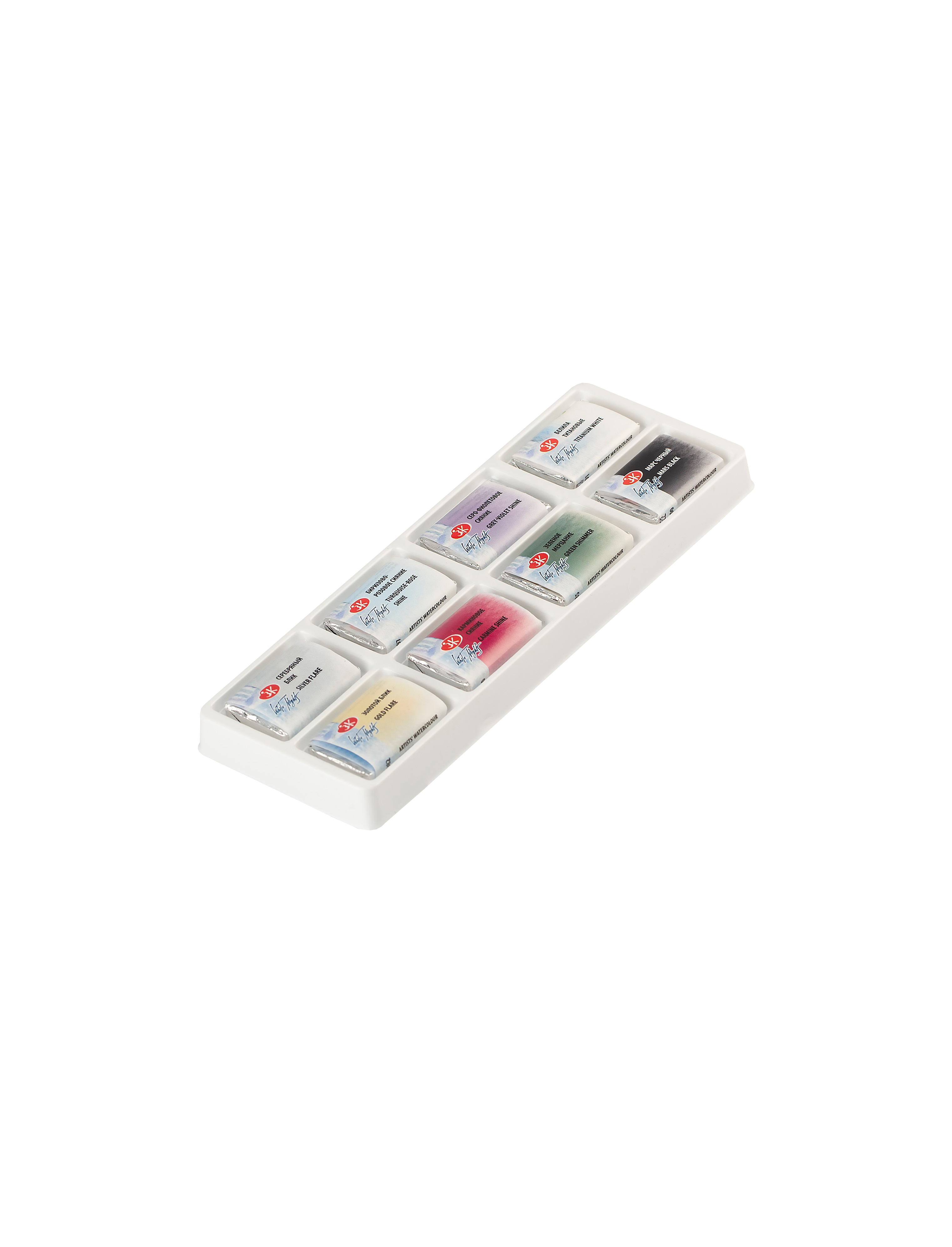 Палитра набора включает уникальные гранулирующиеся оттенки мерцающих акварелей, хамелеоны и дуохромы, серию мерцающих акварелей «Блик» с самый крупным зерном иридисцентных частиц. В наборе представлены мерцающие акварели разного зерна мерцающих частиц: от тонких до самых крупных.
