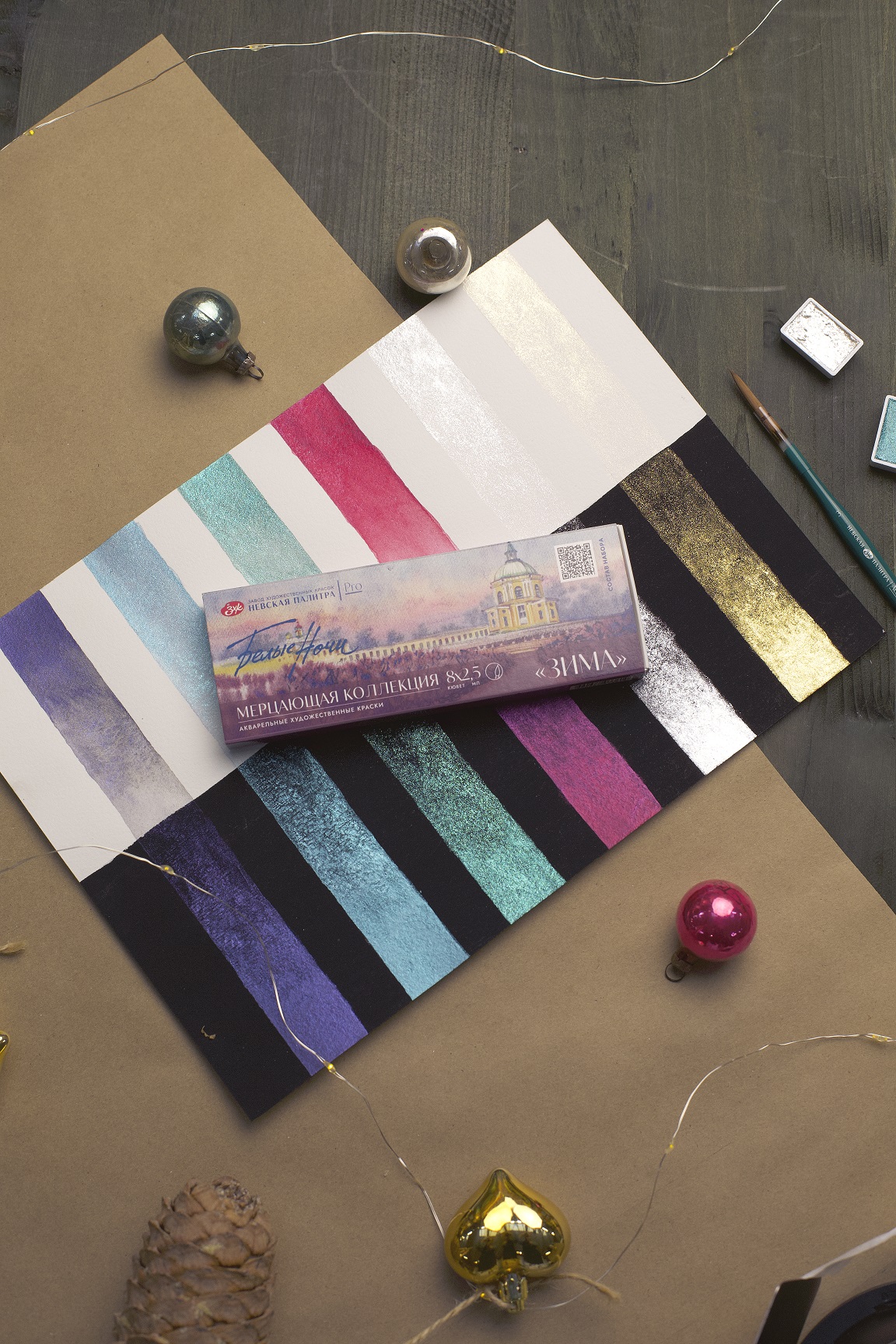 Мерцающие акварели от ЗКХ "Невская палитра" – это сочетание традиционной красоты художественной акварели «Белые ночи» и современных технологий создания пигментов на основе натуральной слюды.