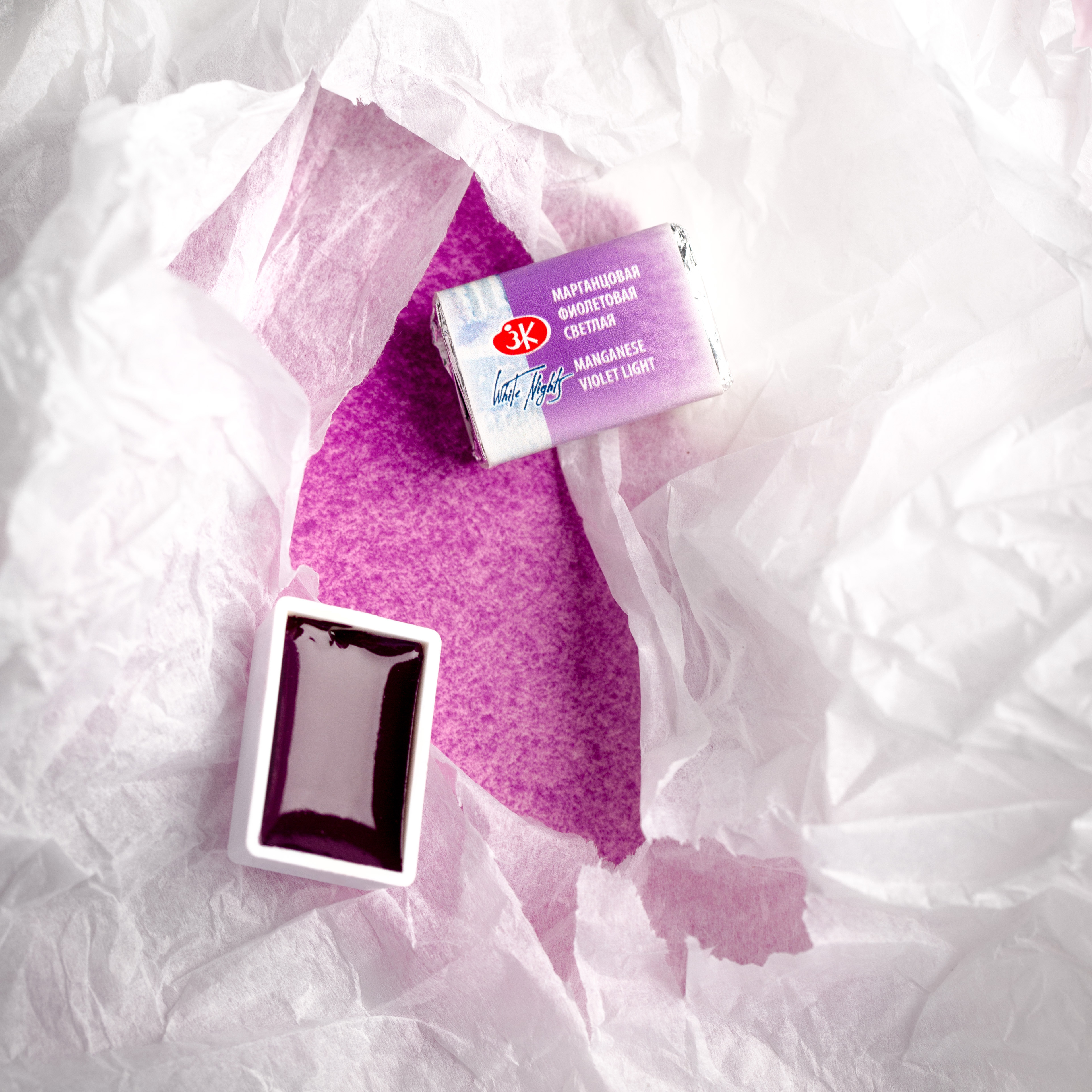 Оттенок акварели с неповторимым фиолетово-красным цветом выполнен на пигменте неорганического происхождения. Обладает полупрозрачным красочным слоем и равномерной грануляцией. Максимальная светостойкость пигмента обеспечивает долговременную сохранность цвета в завершенных работах.