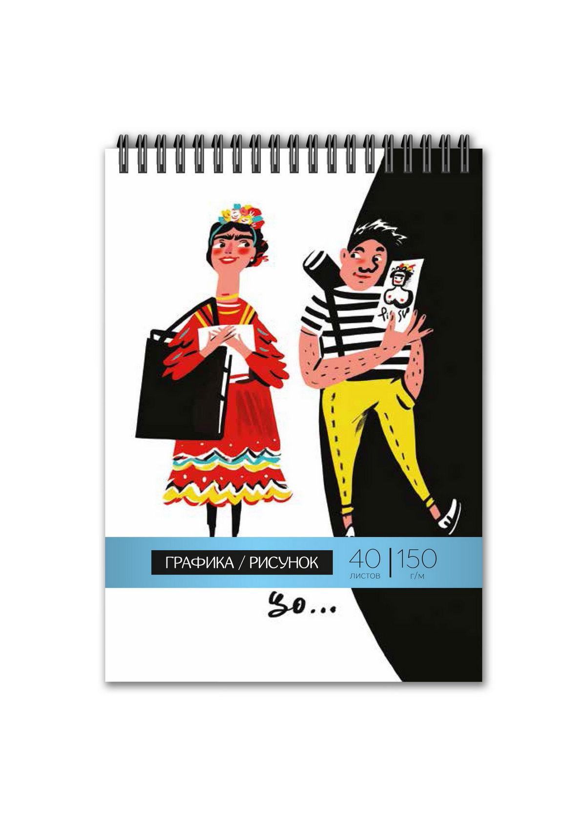 Скетчбук с матовой бумагой умеренной фактурности. 40 матовых листов классического белого цвета (150 г/м2), собранных на спираль и дополненных плотной картонной основой. Нежная фактура бумаги специально создана для графических работ, тонких штрихов и дымчатых растушевок.