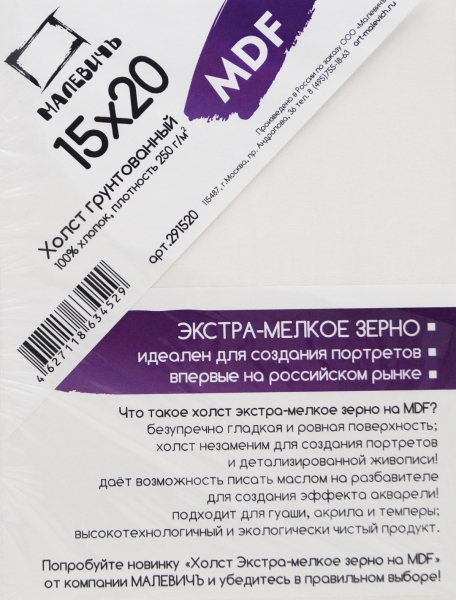 Холст на МДФ, экстра-мелкое зерно, (15х20 см)