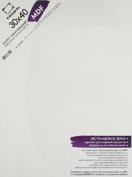 Холст на МДФ, экстра-мелкое зерно, (30х40 см)