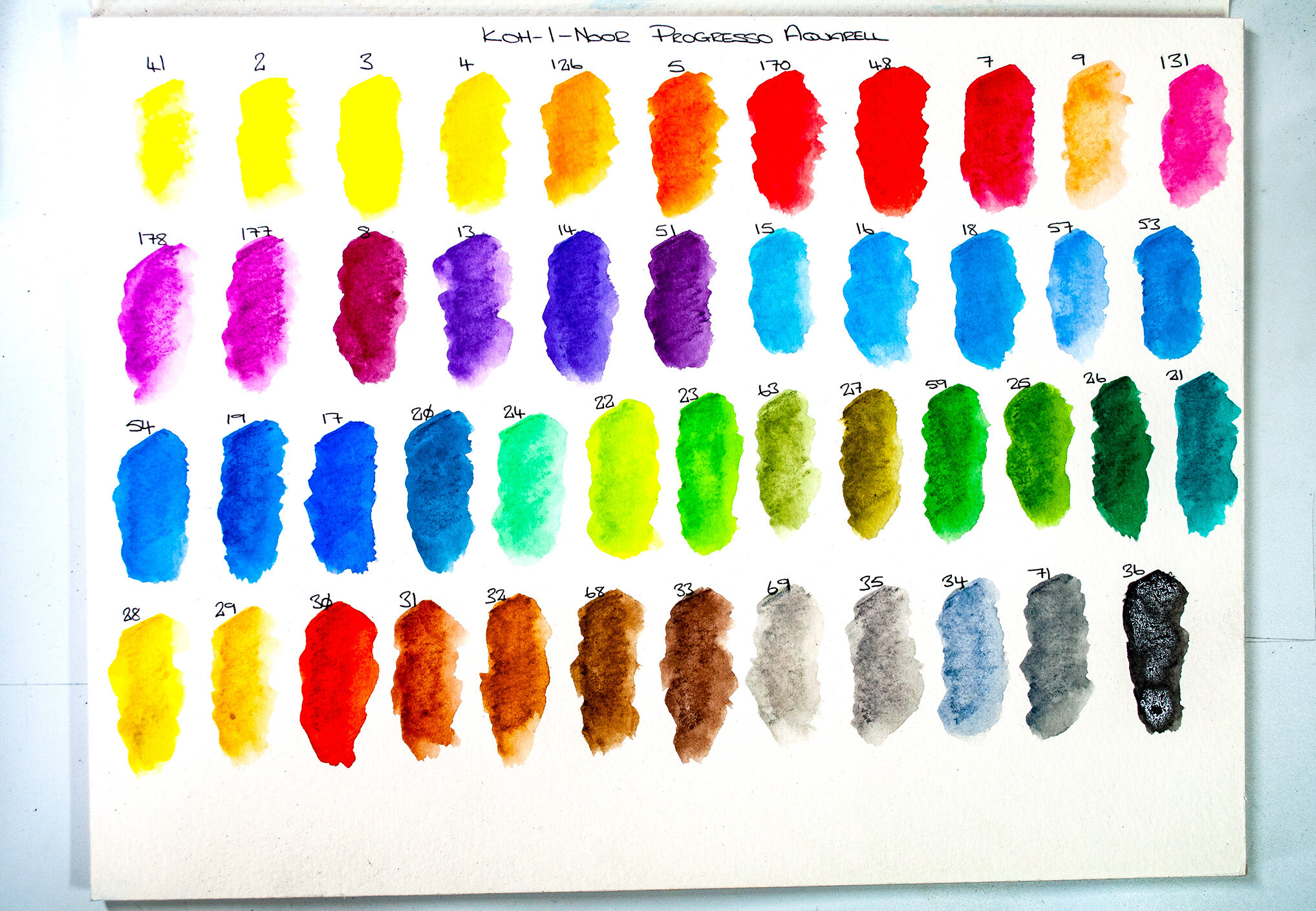 Исходя из списка, можно сделать вывод, это не самые светостойкие пигменты в мире, однако тот факт, что они были протестированы и пользователю предоставлены достоверные данные- очень ценный и верный подход со стороны производителя. Кроме того Koh-I-Noor Progresso Aquarelle позиционируется в первую очередь как художественный материал для школьников.