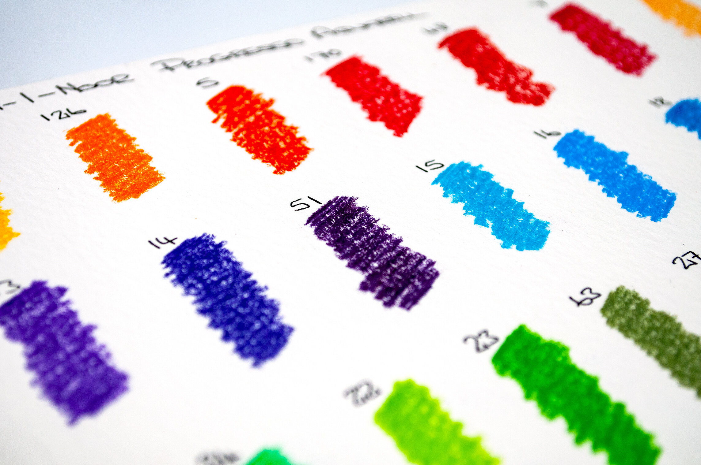 По ощущениям в работе, вопреки внешнему виду, карандаши не похожи на мелки. Твердость стержня и корпуса Progresso Aquarell аналогична твердости любого другого водорастворимого цветного карандаша, например, Koh-I-Noor Mondeluz.