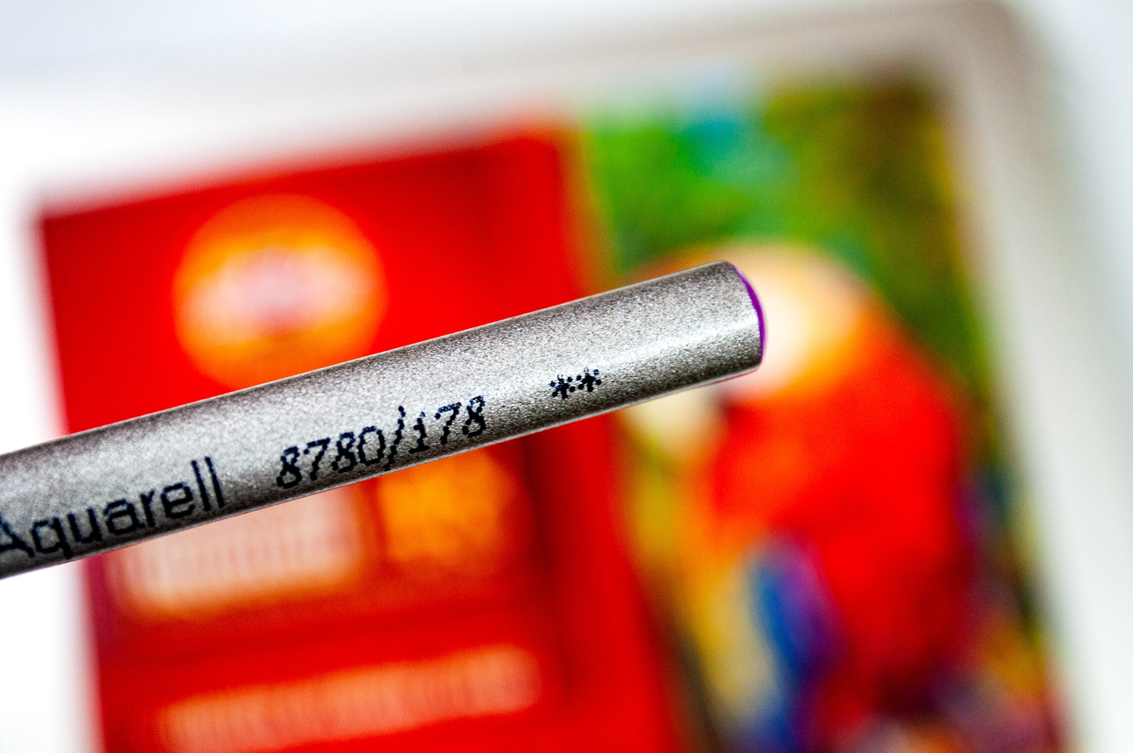 Информация на корпусе содержит штрихкод изделия, название компании, а также серии. Далее на каждом карандаше напечатан номер, начинающийся с 8780/, за которым следует число, относящееся к пигменту этого конкретного карандаша, и, наконец, напечатан рейтинг светостойкости.