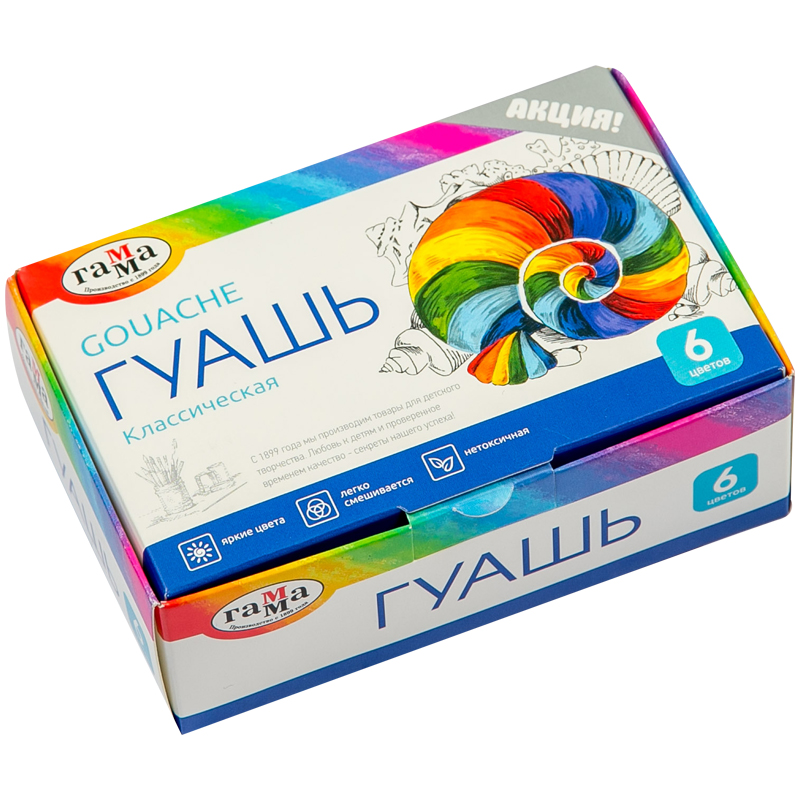 Набор гуашевых красок, 6 цветов, 20 мл. Насыщенные и яркие цвета. Краски хорошо разносятся на бумаге.
