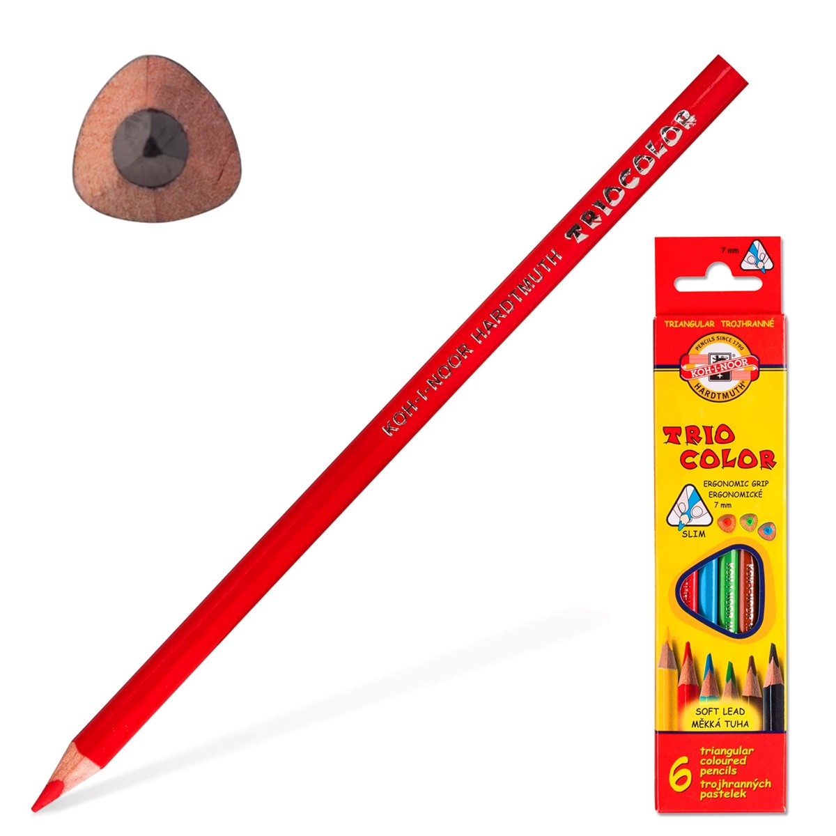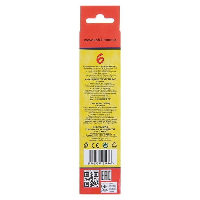 Набор из 6 цветных заточенных карандашей серии "Triocolor" от чешской компании "Koh-I-Noor".